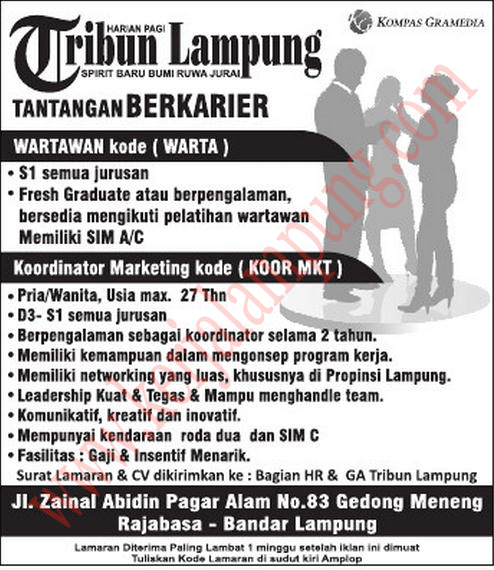 Hari ini tim gingsul ingin berbagi peluang kerja terbaru di bandar lampung untuk sobat semuanya.
